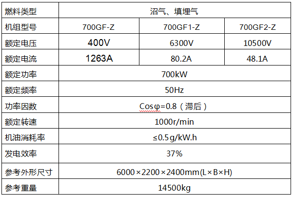 機組型號:700GF-Z 700GF1-Z 700GF2-Z