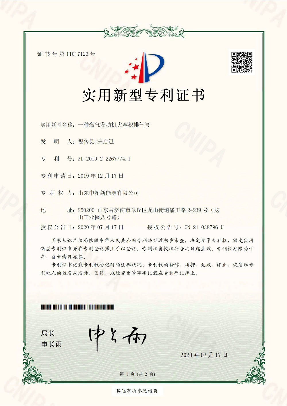 專利證書