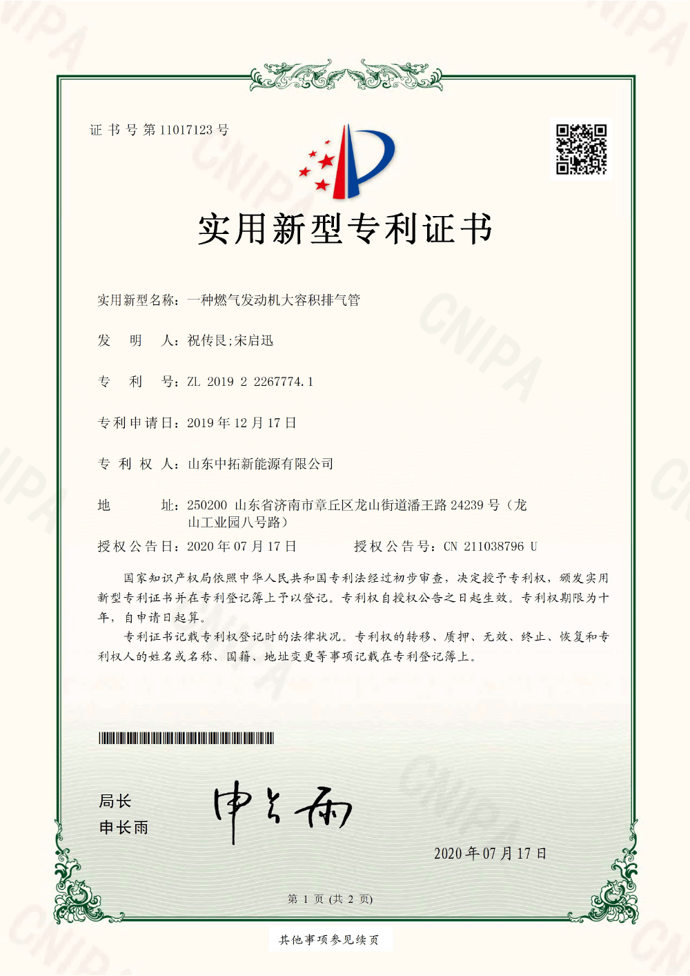 一種燃?xì)獍l(fā)動(dòng)機(jī)大容積排氣管